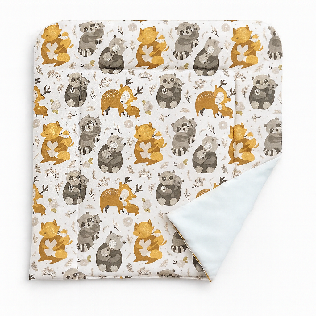 Wickelauflage zweiseitige Wickelunterlage - Wasserdicht, Premium Baumwolle, Bären,Fuchs, Jungen, Baby Kinder 75x75 cm